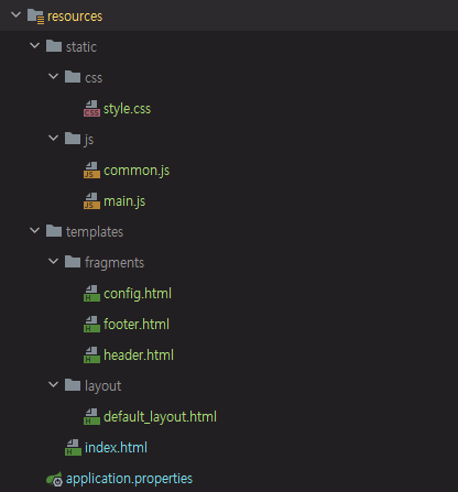 프로젝트 리소스 구성 static templates로 구분