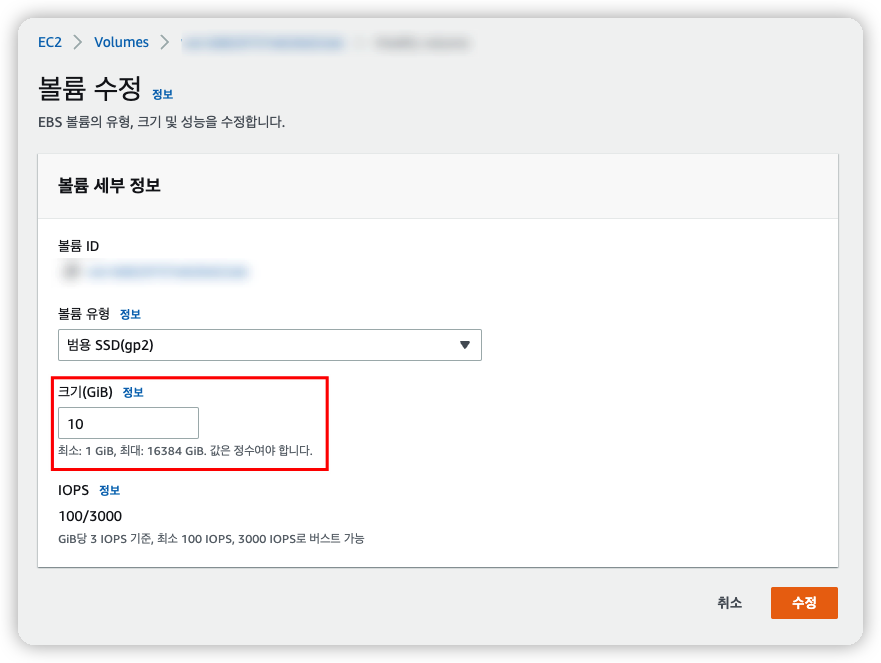 1 . AWS EC2 → 인스턴스 → 스토리지 → 볼륨 확인 및 수정