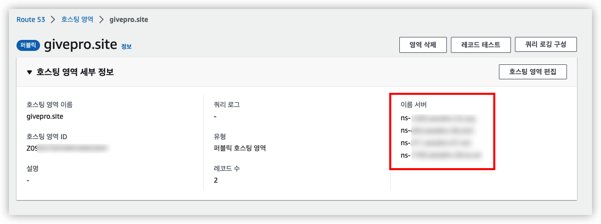 생성을 하면 이제 AWS 네임서버를 확인 할 수 있습니다.