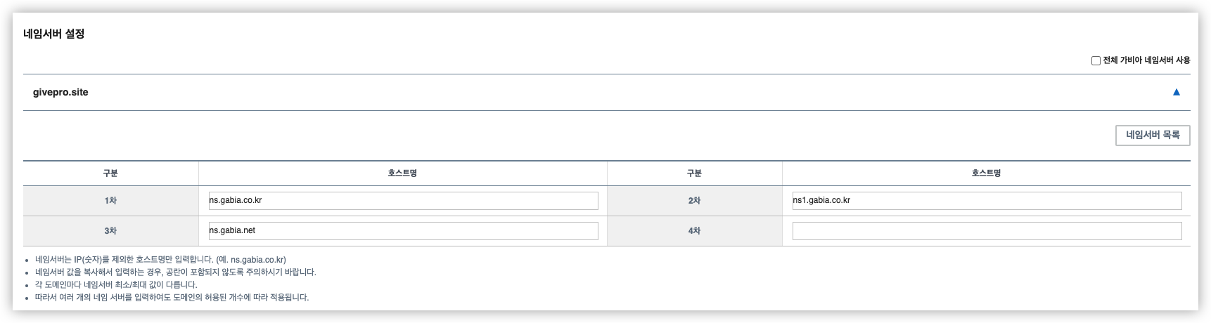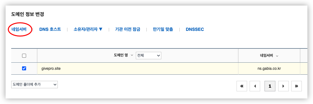 해당 도메인을 가비아 서버에서 진행하는 것이 아니기 때문에 네임서버를 변경해야겠죠?