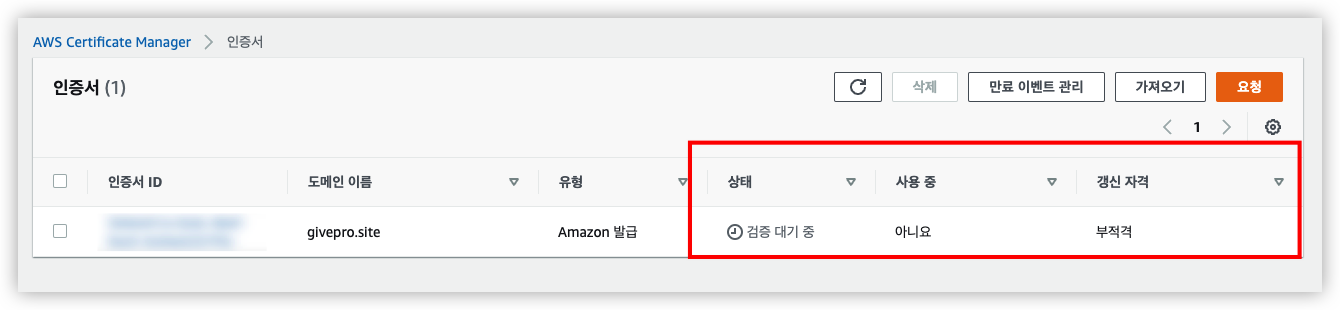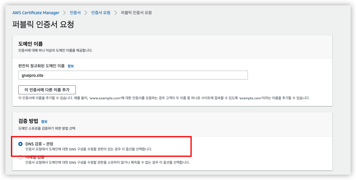 2) ACM 생성 및 인증