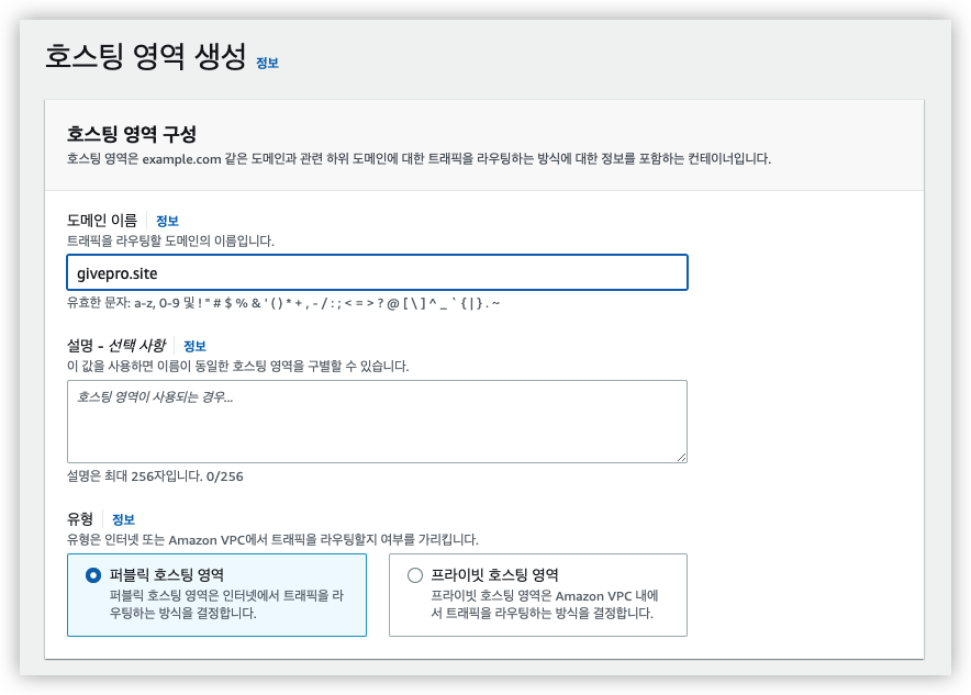 Route 53 호스팅 영역 생성